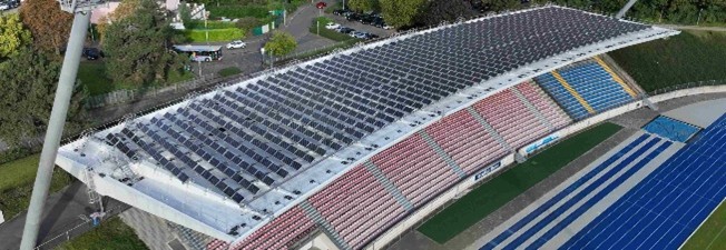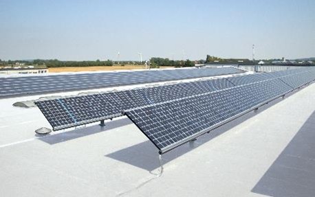 | Tetto con impianto fotovoltaico impermeabilizzato con Triflex ProSolar |