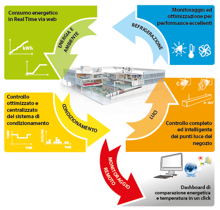 Impianti di climatizzazione e riscaldamento, di illuminazione, circuiti di refrigerazione, quadri elettrici, misuratori di energia, ecc…: tutti questi impianti, diversi tra loro e prodotti da costruttori diversi, si trovano all’interno di ogni edificio. RED optimise consente di centralizzare le informazioni di ognuno di questi sistemi, processando i dati necessari sul cloud in modo che questi siano sempre disponibili e utilizzabili.